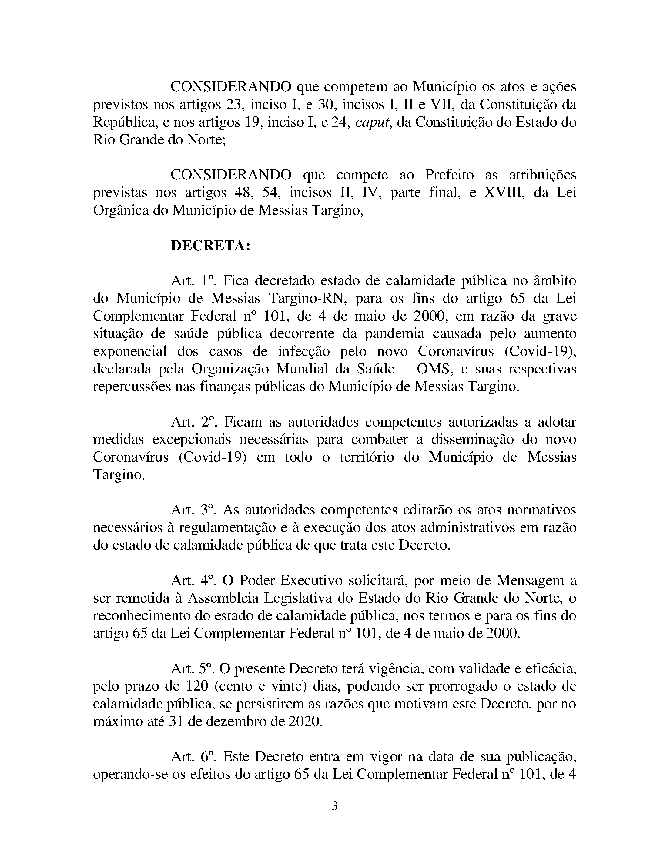 Conforme MP n° 2.200-2 de 24/08/2001, que institui a infraestrutura de chaves Públicas. Matéria Publicada no Diário Oficial do Município de Messias Targino/RN no dia 20/04/2020 - Edição 53.